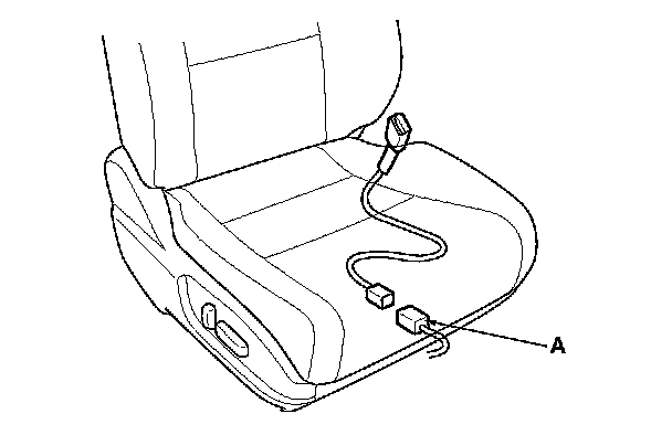 6. Disconnect the front passenger's seat wire harness 2P connector (A) from the front passenger's seat belt buckle switch 2P connector.