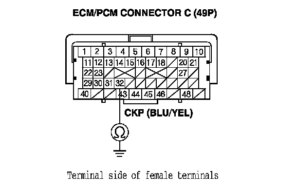 15. Connect CKP sensor 3P connector terminal No. 1 to body ground with a jumper wire.