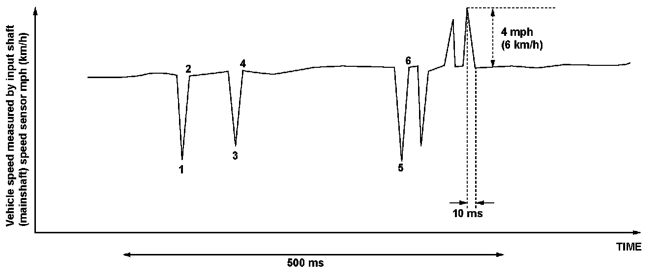 The fluctuation of the vehicle speed measured by the input shaft (mainshaft) speed sensor in 10 milliseconds is 4 mph (6 km/h) or more, and it fluctuates at least six times within 500 milliseconds.