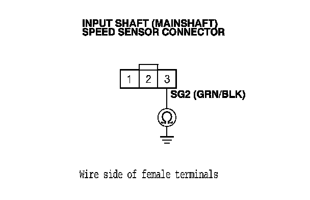16. Check for continuity between input shaft (mainshaft) speed sensor connector terminal No. 2 and body ground.