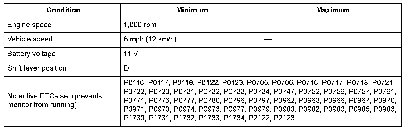2. Shift to D, and drive the vehicle at a speed of 8 mph (12 km/h) or more for at least 12 seconds in 5th gear.
