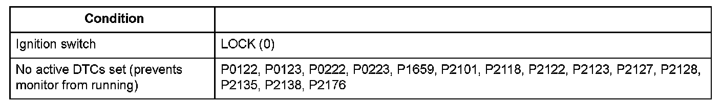 Conditions for setting the DTC