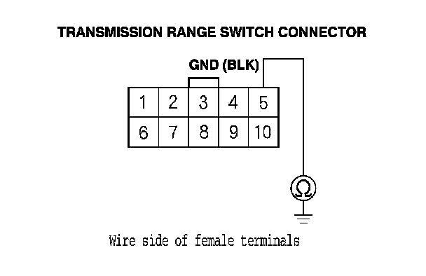 6. Check for continuity between transmission range switch connector terminal No. 5 and body ground.