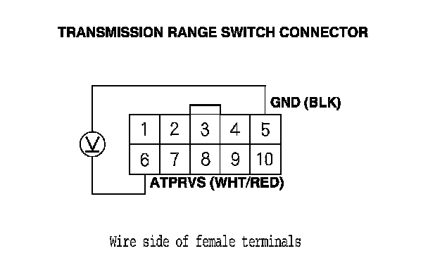 8. Measure the voltage between transmission range switch connector terminals No. 5 and No. 6.