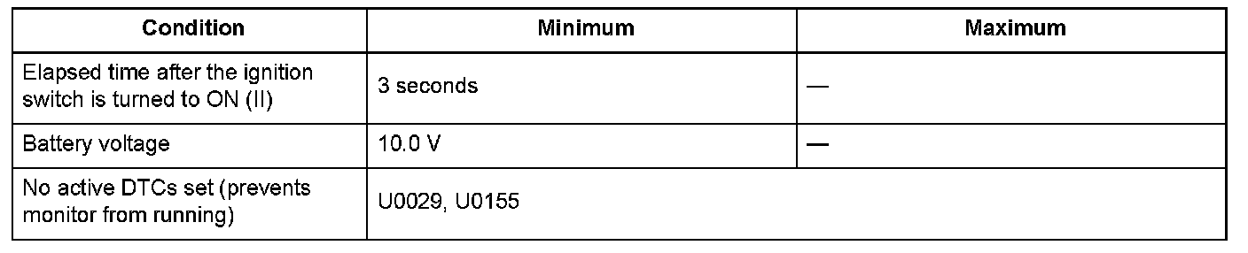 Conditions for setting the DTC
