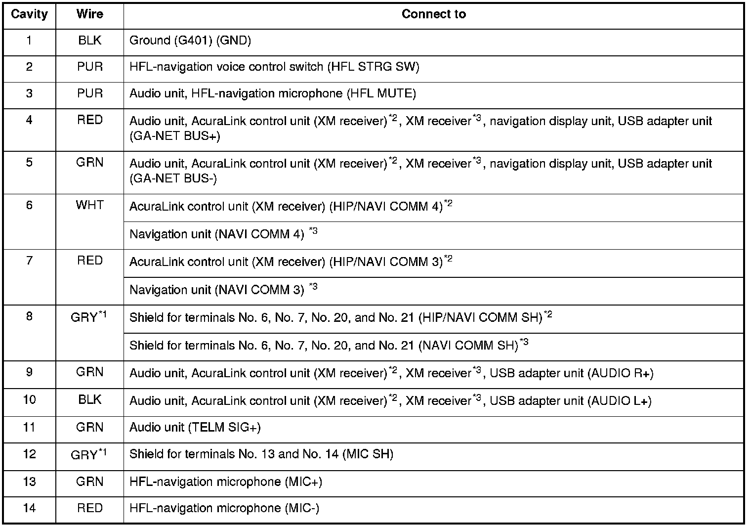 *1: The shielded wires have a heat-shrunk tube insulating the outside of the wire. The color of the insulating tube, typically black or dark gray, may not match the color of the wire listed on the schematic.