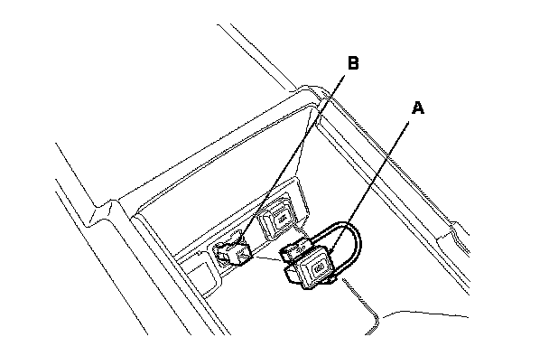 2. Pull out the USB jack (A) from the center console, then disconnect the USB adapter cable connector (B).