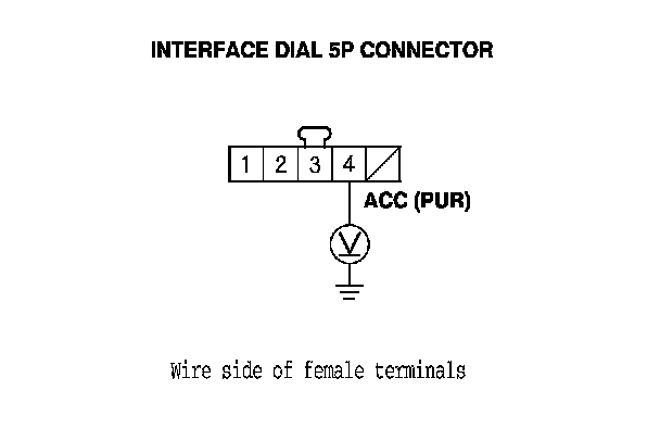 6. Measure the voltage between interface dial 5P connector terminal No. 4 and body ground.