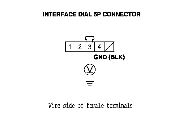 7. Measure the voltage between interface dial 5P connector terminal No. 3 and body ground.