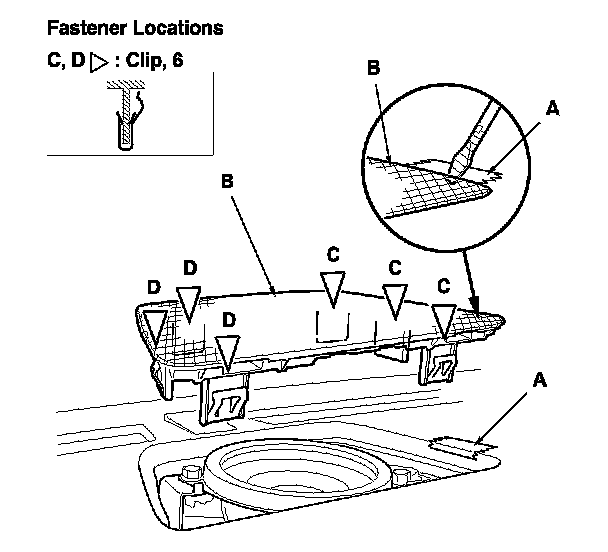 2. Pull out the speaker cover to detach remaining clips (D), then remove the cover.