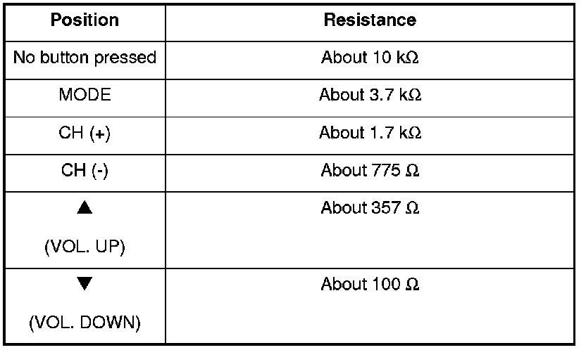 3. If the resistance is not as specified, replace the audio remote switch.