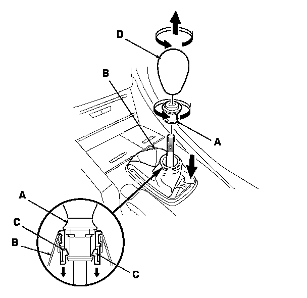 - Turn the shift knob (C) until shift knob contacts with spacer A.
