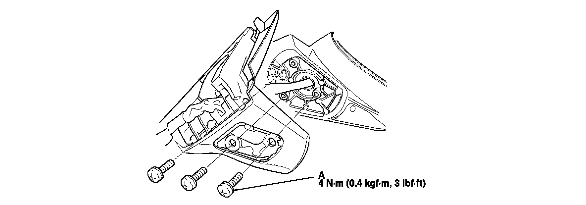 2. Reassemble the mirror in the reverse order of removal. Apply the LOCTITE to the screws (A) and tighten them to 4 N-m (0.4 kgf-m, 3 lbf-ft).