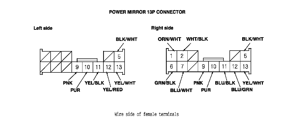 5. Disassemble the power mirror 13P connector, and remove all terminals from it.