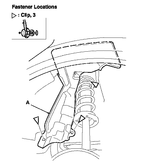 2. Remove the clips, then remove the fuel pipe protector (A).