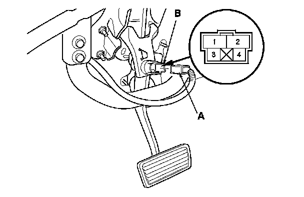 1. Disconnect the 4P connector (A) from the brake pedal position switch (B).
