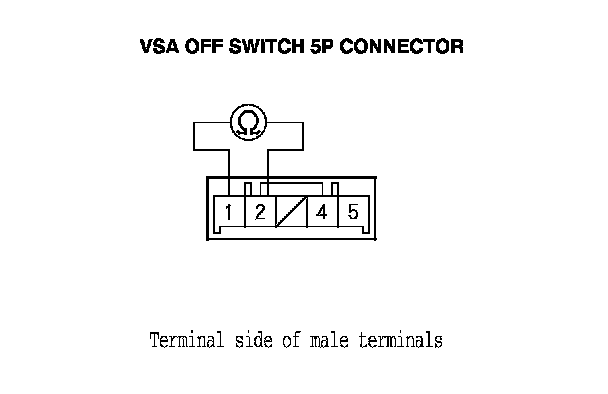 5. Check for continuity between VSA OFF switch 5P connector terminals No. 4 and No. 5. There should be continuity at all times.
