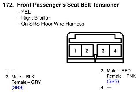 View 172 - Front Passenger's Seat Belt Tensioner Connector View