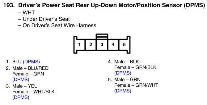 View 193 - Driver's Power Seat Rear Up-Down Motor/Position Sensor Connector View (DPMS)
