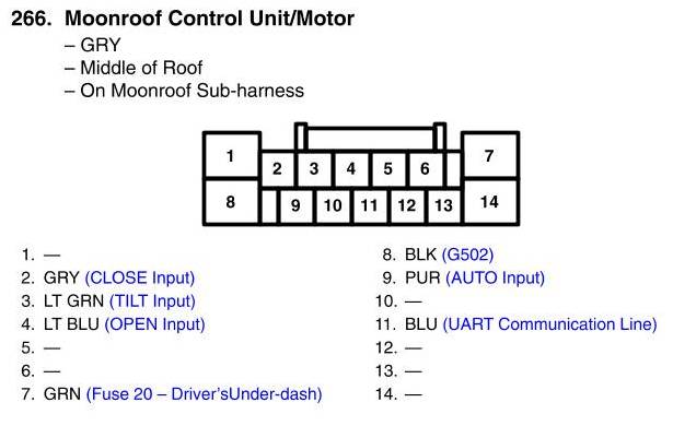 View 266 - Moonroof Control Unit/Motor Connector View