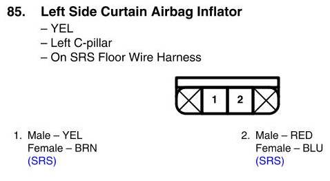 View 85 - Left Side Curtain Airbag Inflator Connector View
