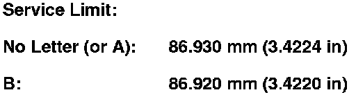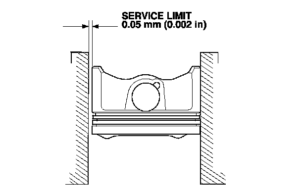 7. Calculate the difference between the cylinder bore diameter and the piston diameter. If the clearance is near or exceeds the service limit, inspect the piston and the cylinder bore for excessive wear.