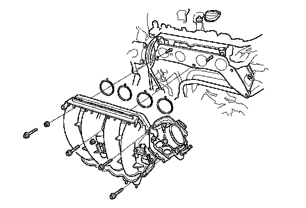 9. Remove the intake manifold mounting bolts/nuts, then remove the intake manifold from the cylinder head.