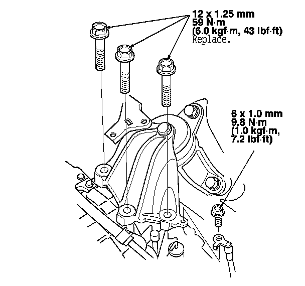 NOTE: Reinstall the mounting bolts and the support nuts in the sequence given in the following steps. Failure to follow this sequence may cause excessive noise and vibration, and reduce engine mount life.