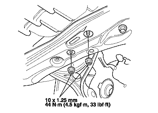 21. Tighten the front and rear subframe mounting bolts to the specified torque.