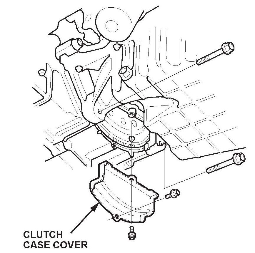 80. Reinstall the clutch case cover and torque the bolts to 12 N.m (8.7 lb-ft). Reinstall the two bolts securing the oil pan to the transmission and torque them to 64 N.m (47 lb-ft).