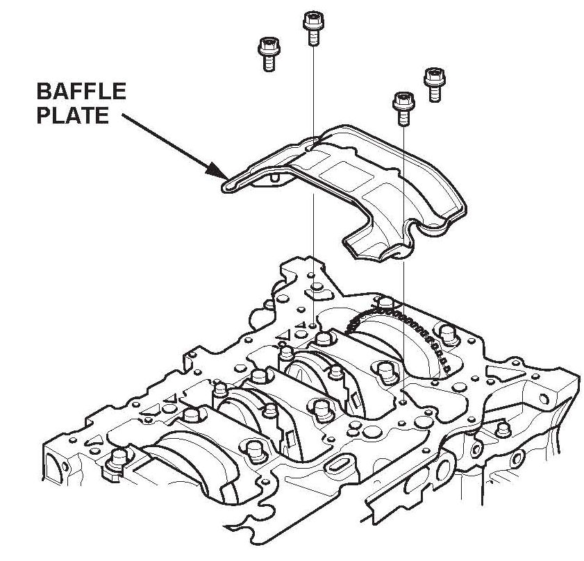 63. Install the baffle plate, and torque the bolts to 12 N.m (8.7 lb-ft).