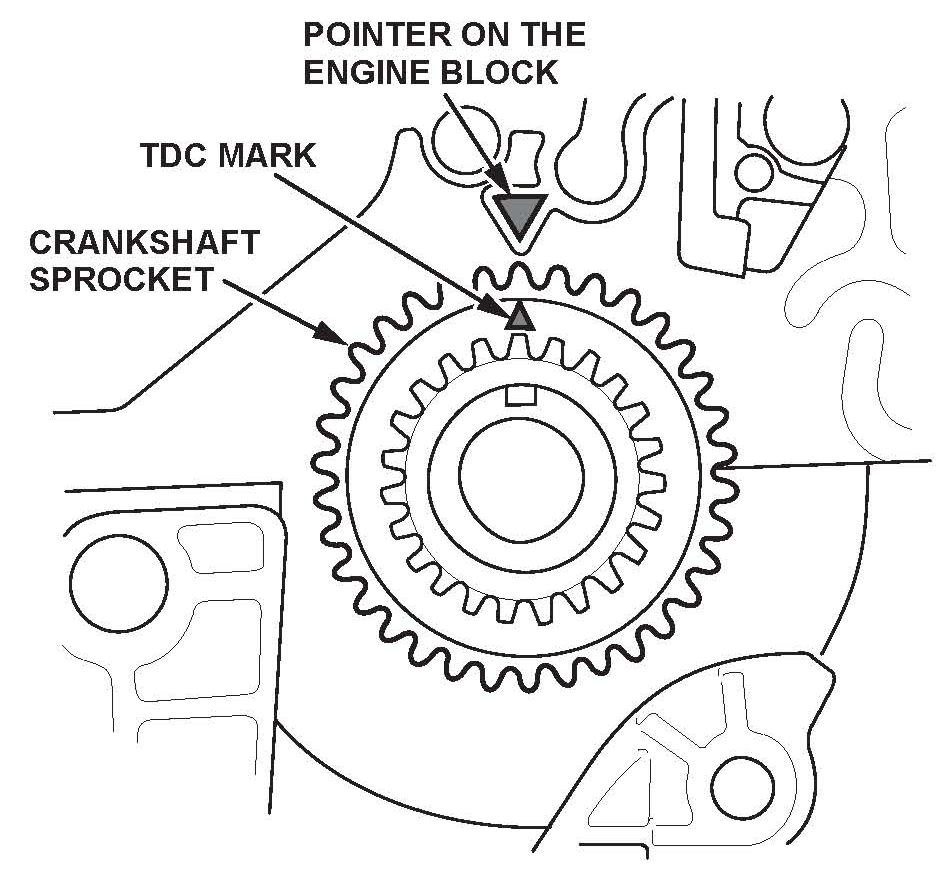 Set the crankshaft to top dead center (TDC). Align the TDC mark on the crankshaft sprocket with the pointer on the engine block.