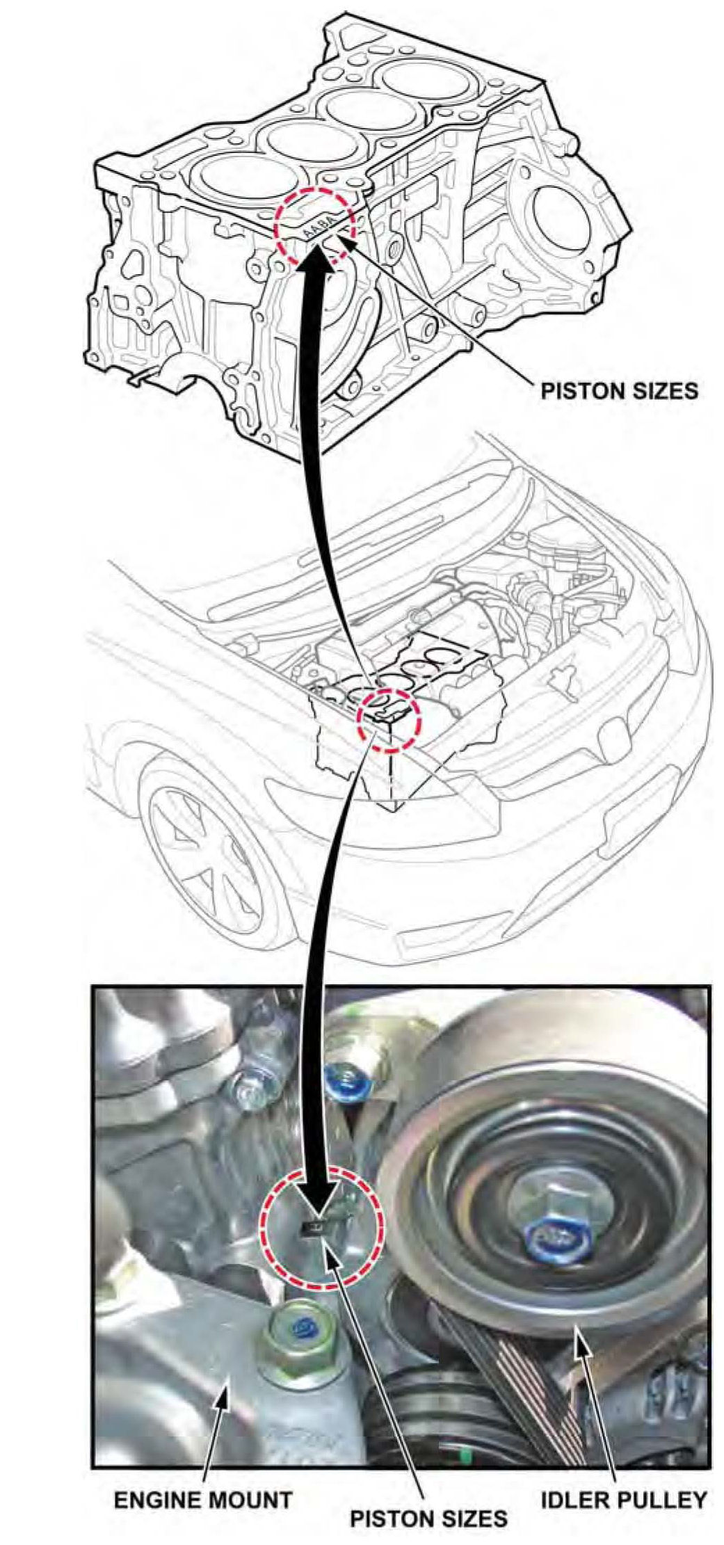 Every engine has some combination of A- and B-sized pistons. You can determine the sizes and their locations in the block by inspecting the markings on the timing chain end of the engine block or by looking at the pistons.