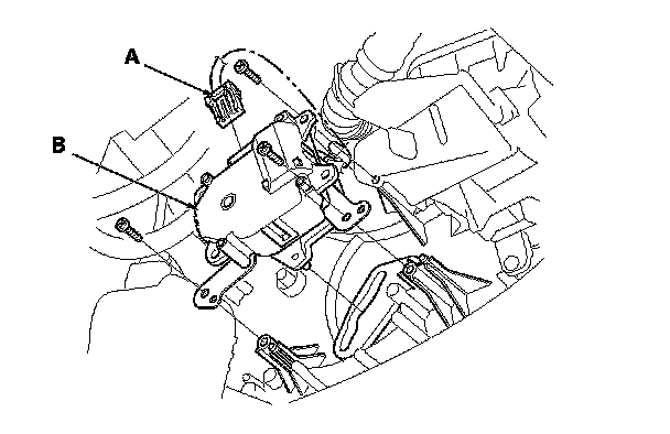 2. Disconnect the 7P connector (A) from the driver's air mix control motor (B). Remove the self-tapping screws and the driver's air mix control motor from the heater unit.