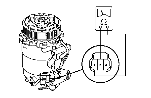 4. Check for continuity between the A/C compressor clutch connector terminals No. 1 and No. 2. If there is no continuity, replace the thermal protector. Service and Repair