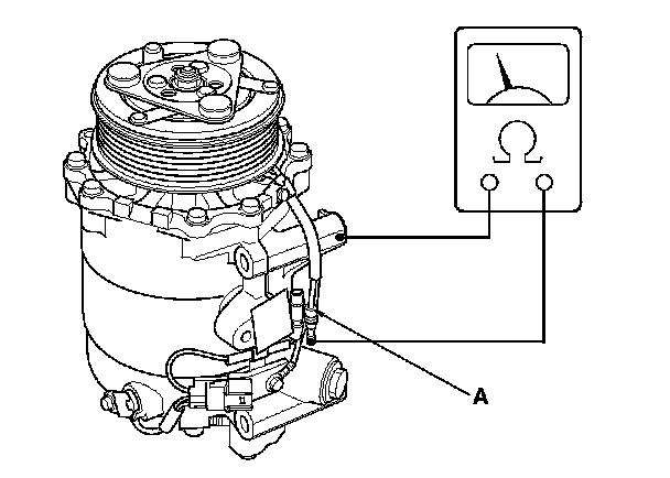 7. Disconnect the field coil connector (A). Check resistance of the field coil. If resistance is not within specifications, replace the field coil. Service and Repair