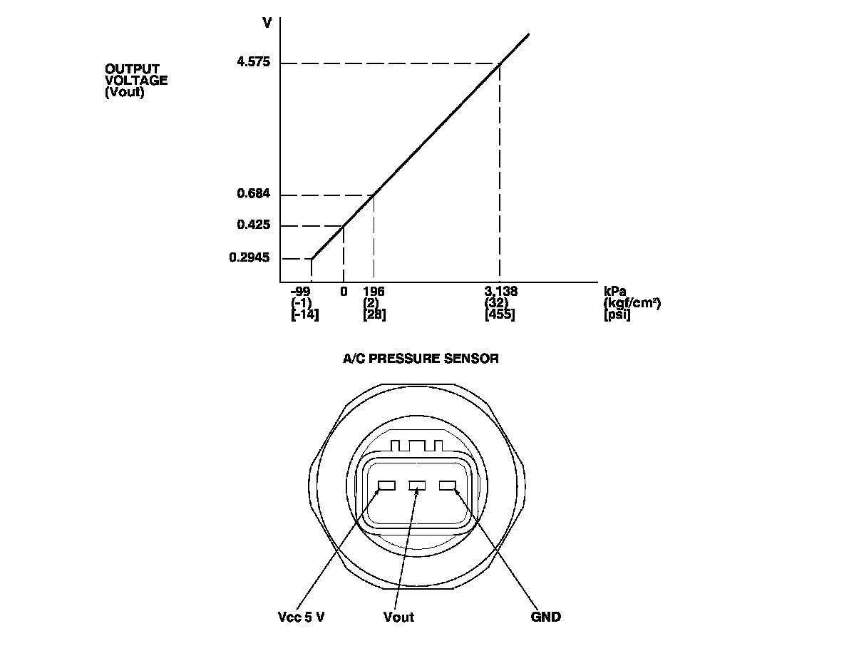 The response of the A/C pressure sensor is shown in the graph.