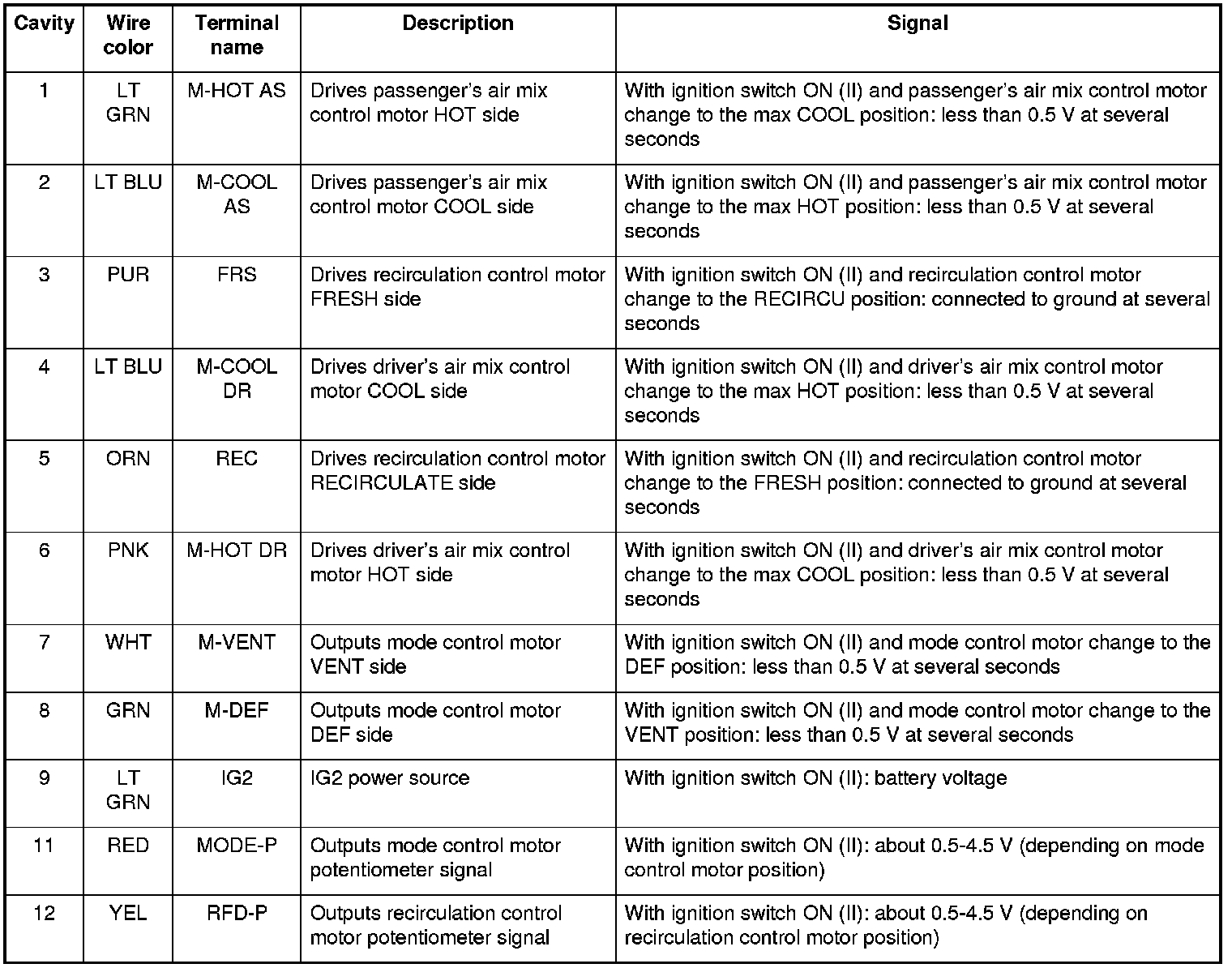 Climate Control Door Positions