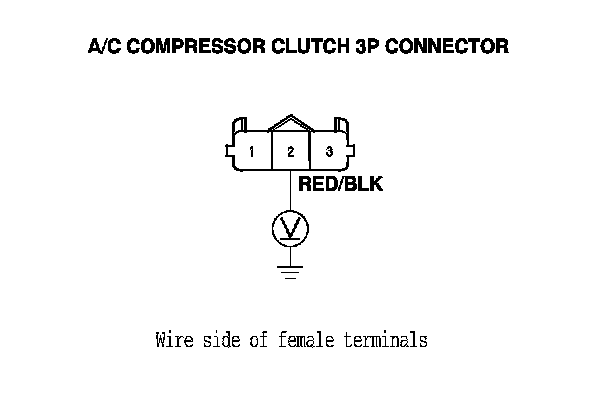11. Measure the voltage between the A/C compressor clutch 3P connector terminal No. 2 and body ground.