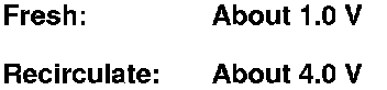 2. Connect battery power to terminal No. 1 of the recirculation control motor, and ground terminal No. 2; the recirculation control motor should run, and stop at Fresh. If it doesn't, reverse the connections; the recirculation control motor should run, and stop at Recirculate. When the recirculation control motor stops running, disconnect battery power immediately.