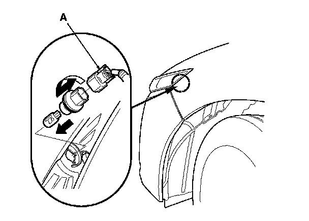 2. Turn the cover (A) 45 ° counterclockwise to remove it from the headlight assembly.