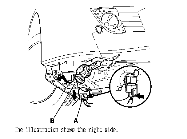 2. Disconnect the 2P connector (A) from the fog light (B).