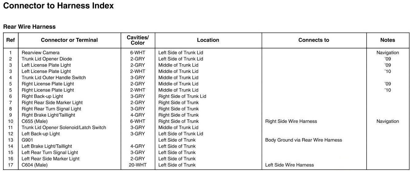 Rear Wire Harness Connector And Harness Locations