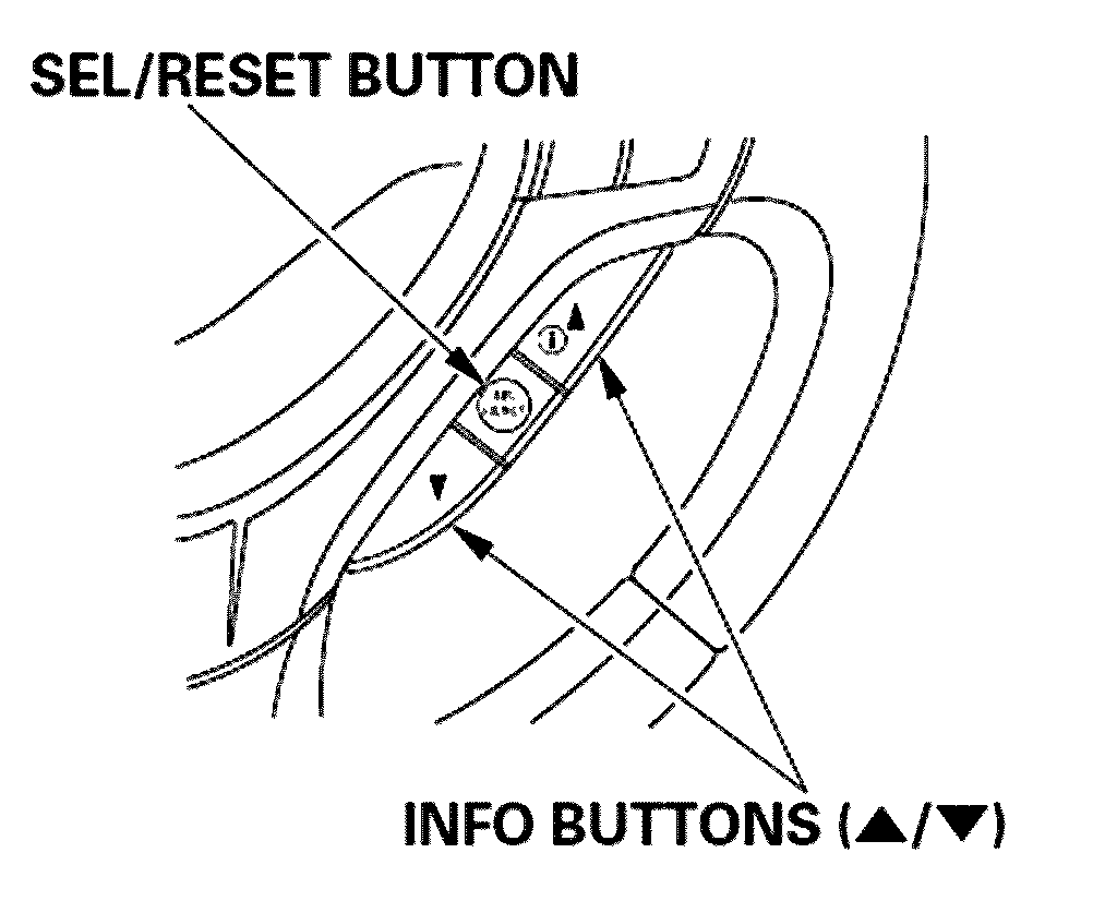 4. Select "RESET" by pressing the INFO button, then press the SEL/RESET button to reset the engine oil life display. The maintenance item code(s) will disappear, and the engine oil life will reset to "100." If you want to cancel the oil life reset mode select "CANCEL."