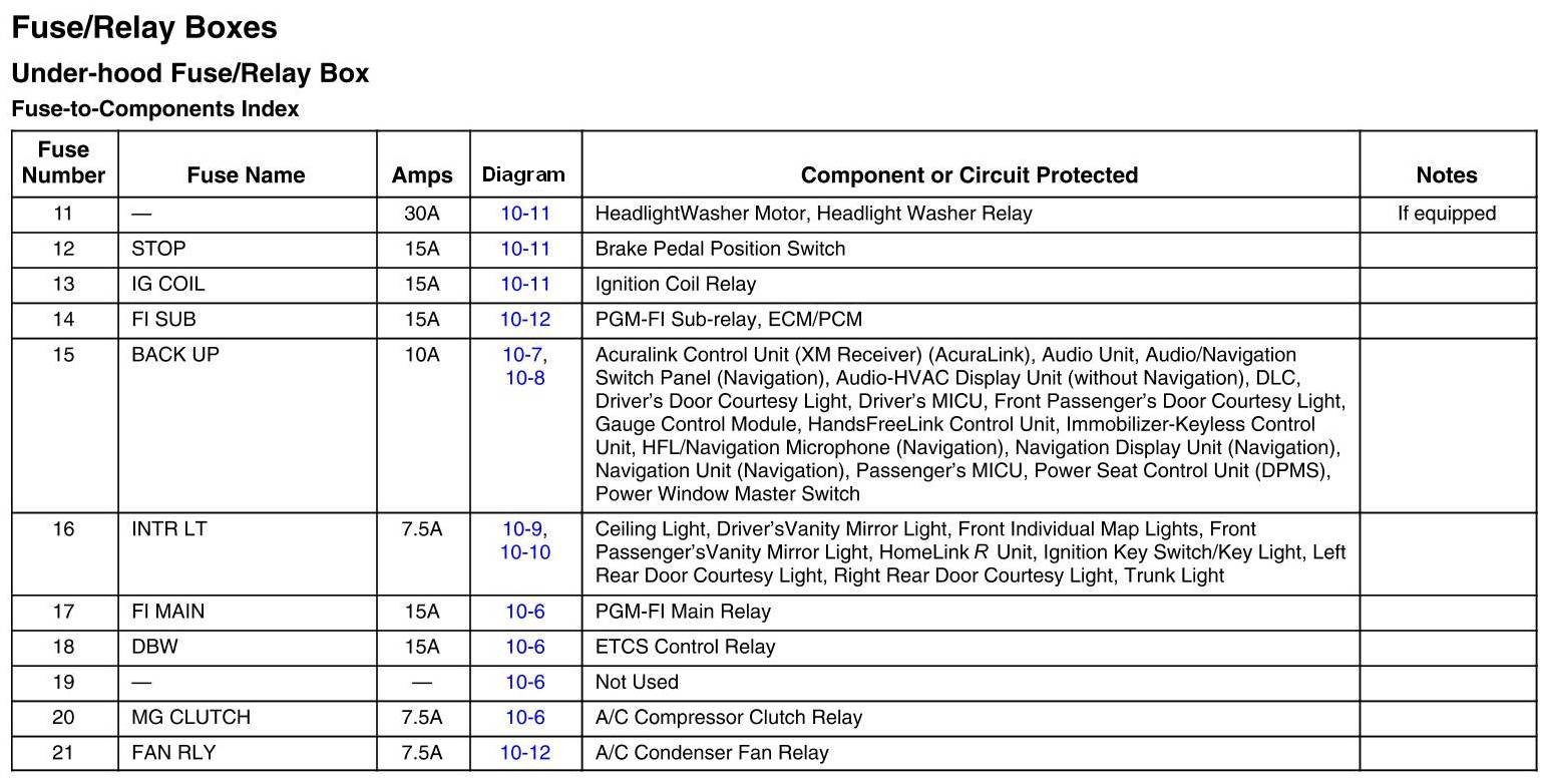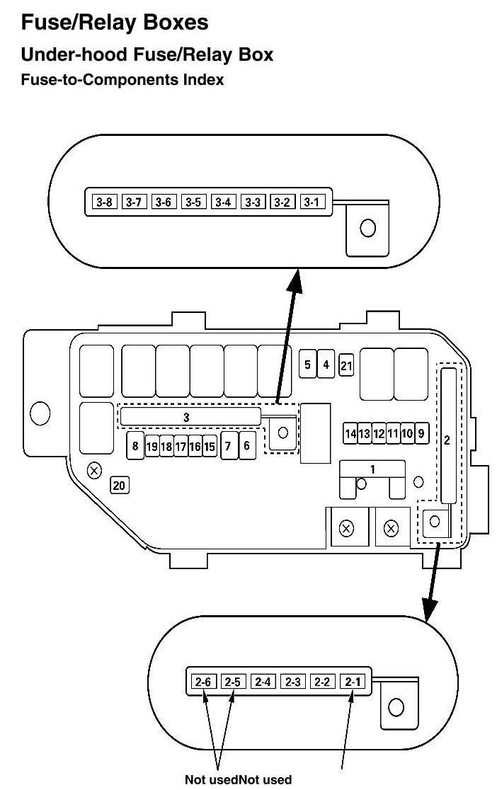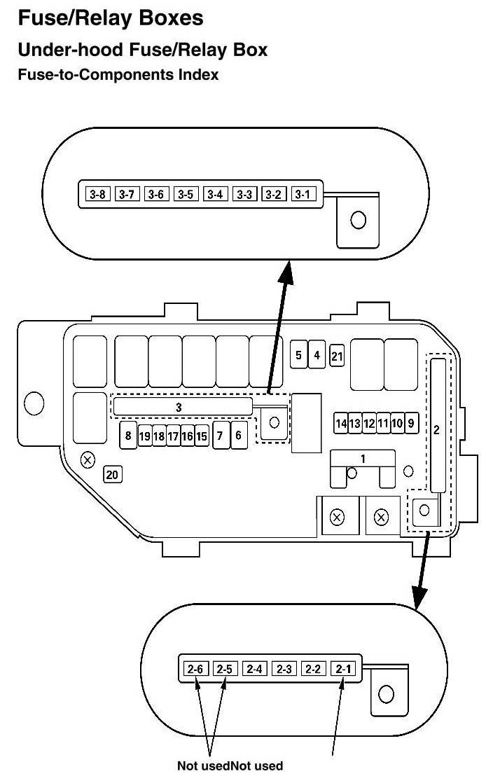 Under-hood Fuse/Relay Box - Fuse-to-Components Index