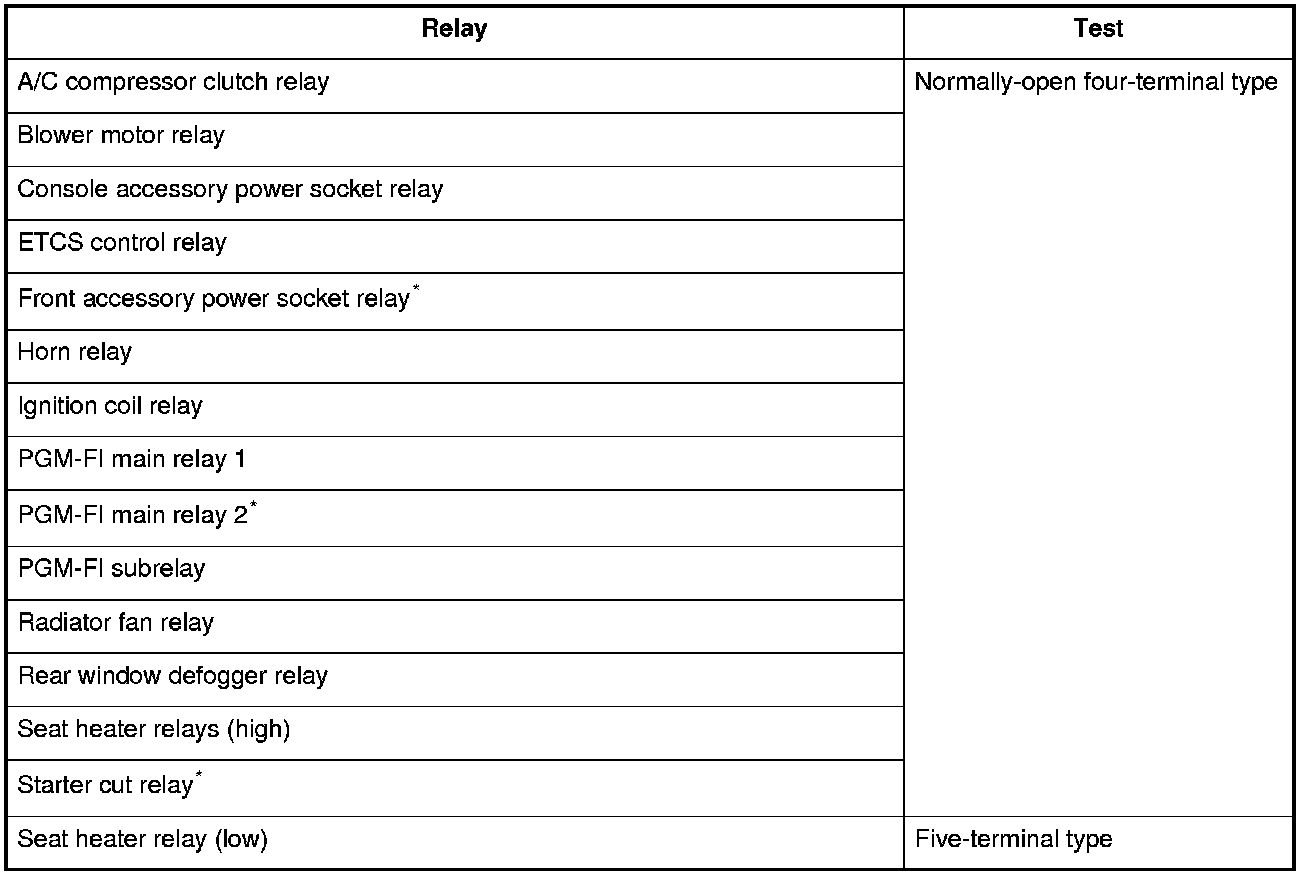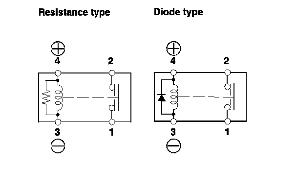 - There should be continuity between terminals No. 1 and No. 2 when battery power is connected to terminal No. 5, and body ground is connected to terminal No. 3.