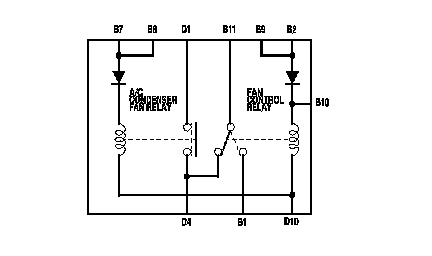 There should be continuity between terminals B1 and B11 when battery power is connected to terminal B2 (B9, or B10), and body ground is connected to terminal D10. There should be continuity between terminals B11 and D4 when power is disconnected.