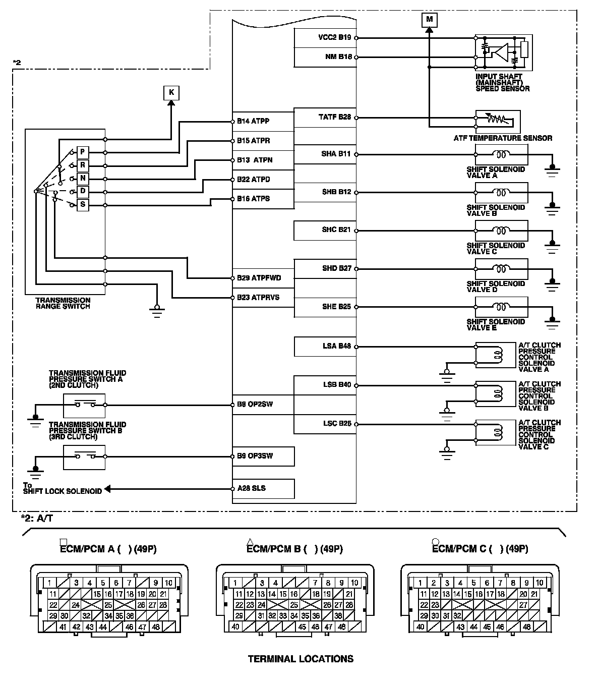ECM/PCM Inputs and Outputs at ECM/PCM Connector B (triangle) (49P)