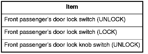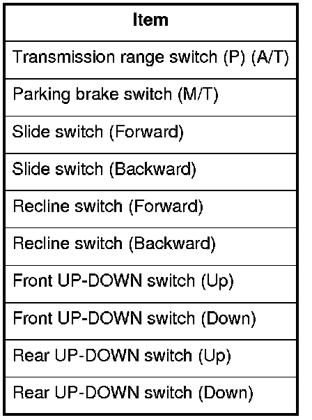 12. The following tables list the circuits that can be checked in Test Mode 2. Operate the switch that is most closely related to the problem. If the circuit is OK, the ceiling light will blink once. If the circuit is faulty, there will be no indication.
