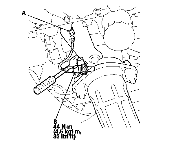 2. Disconnect the secondary HO2S 4P connector (A), then remove secondary HO2S (B).